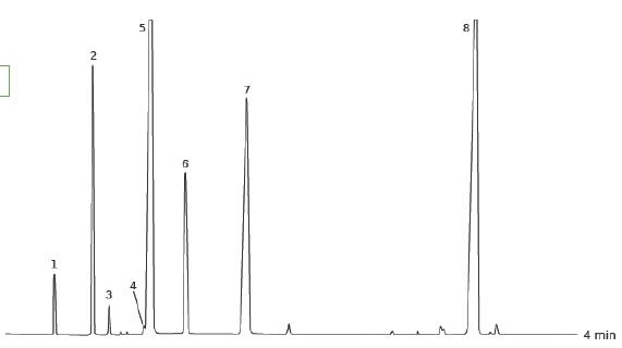 升溫程序:50℃ (0.1min), 50℃ /min, 250℃ 樣品:用環(huán)己烷稀釋成 1% 的樣品濃度