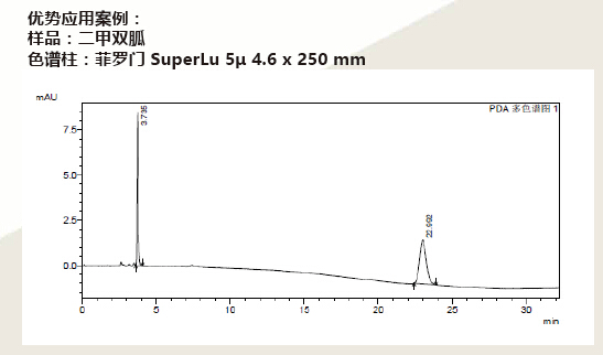 SuperLu SCX色譜柱鍵合苯磺酸提供離子交換固定相,與芳香化合物相互作用 。