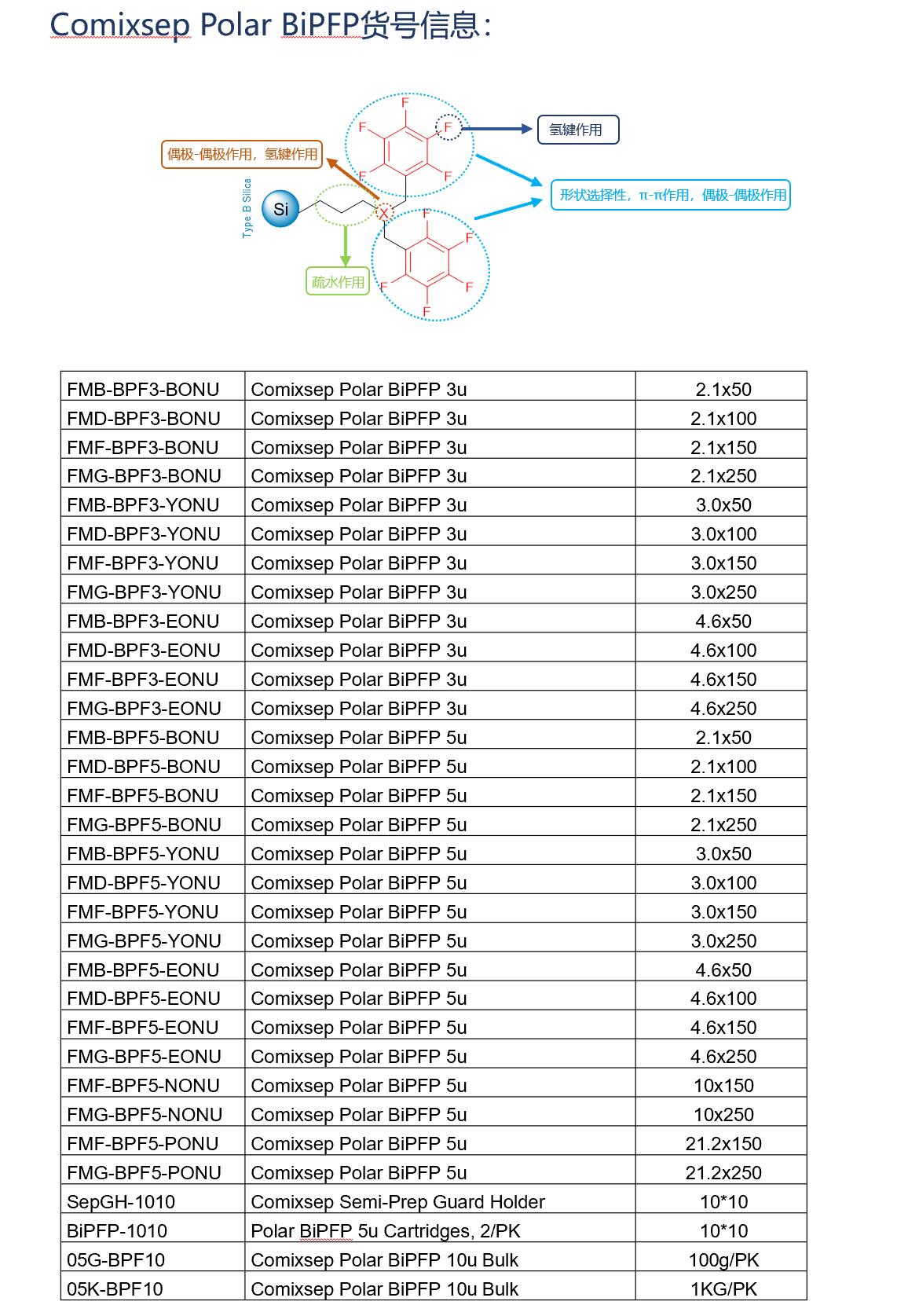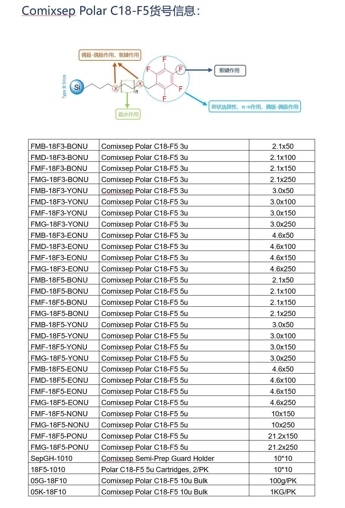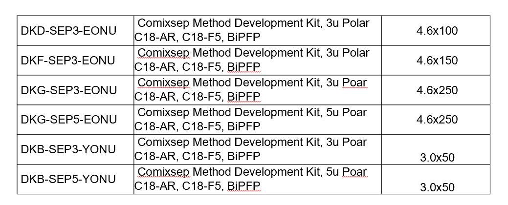 Comixsep復合反相固定相方法包貨號信息