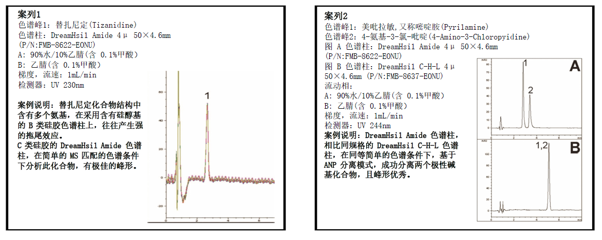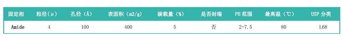 - DreamHsil Amide 色譜柱 采用獨(dú)特鍵合技術(shù),將酰胺基團(tuán)直接獨(dú)立的單位點(diǎn)鍵合于Si-H鍵上直接形成Si-C鍵的Amide鍵合相。增加了穩(wěn)定性與壽命 。不發(fā)生固定相的酸解。