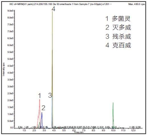 圖 1 四種農(nóng)殘待測物總離子流圖