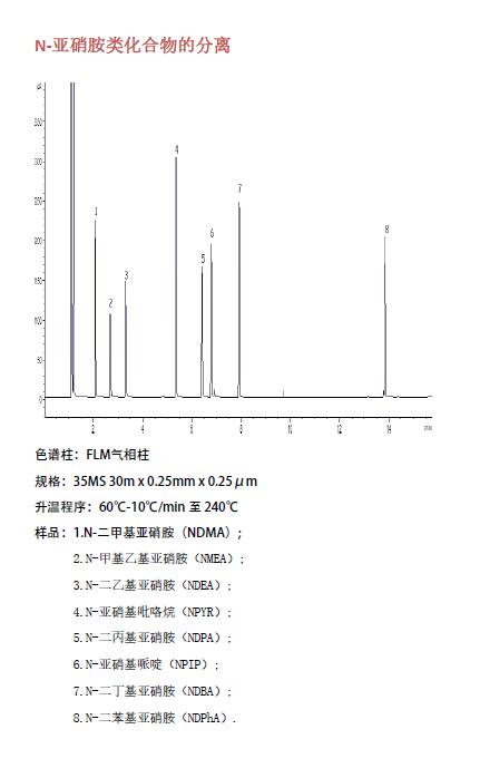 Nitrosamines(基因毒性和元素雜質相關應用圖譜)菲羅門氣相柱